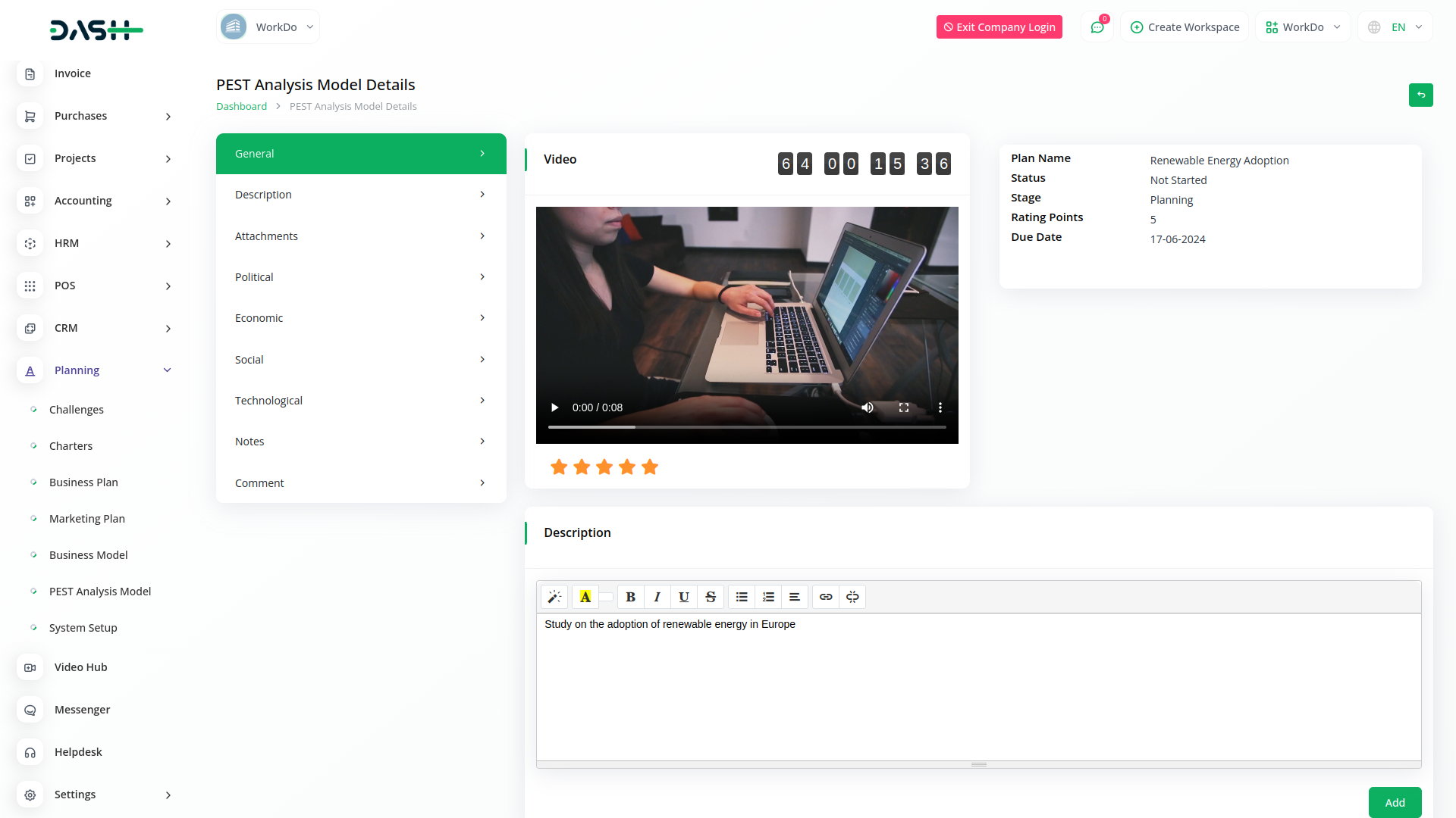 The PEST Analysis Module of Dash SaaS is not just a tool for analysis but a strategic asset for businesses aiming to thrive in a dynamic environment. By leveraging insights from political, economic, social, and technological factors, organizations can make informed decisions, mitigate risks, and capitalize on opportunities. Empowered with actionable data, businesses can navigate uncertainties and drive sustainable growth in their respective industries.