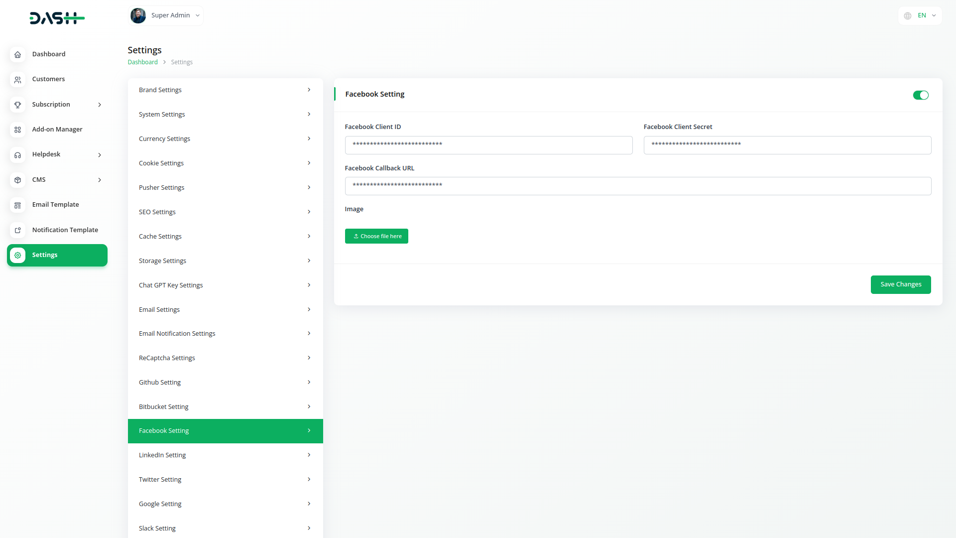 Enable easy and secure user access with the Sign-In with Facebook module in Dash SAAS.